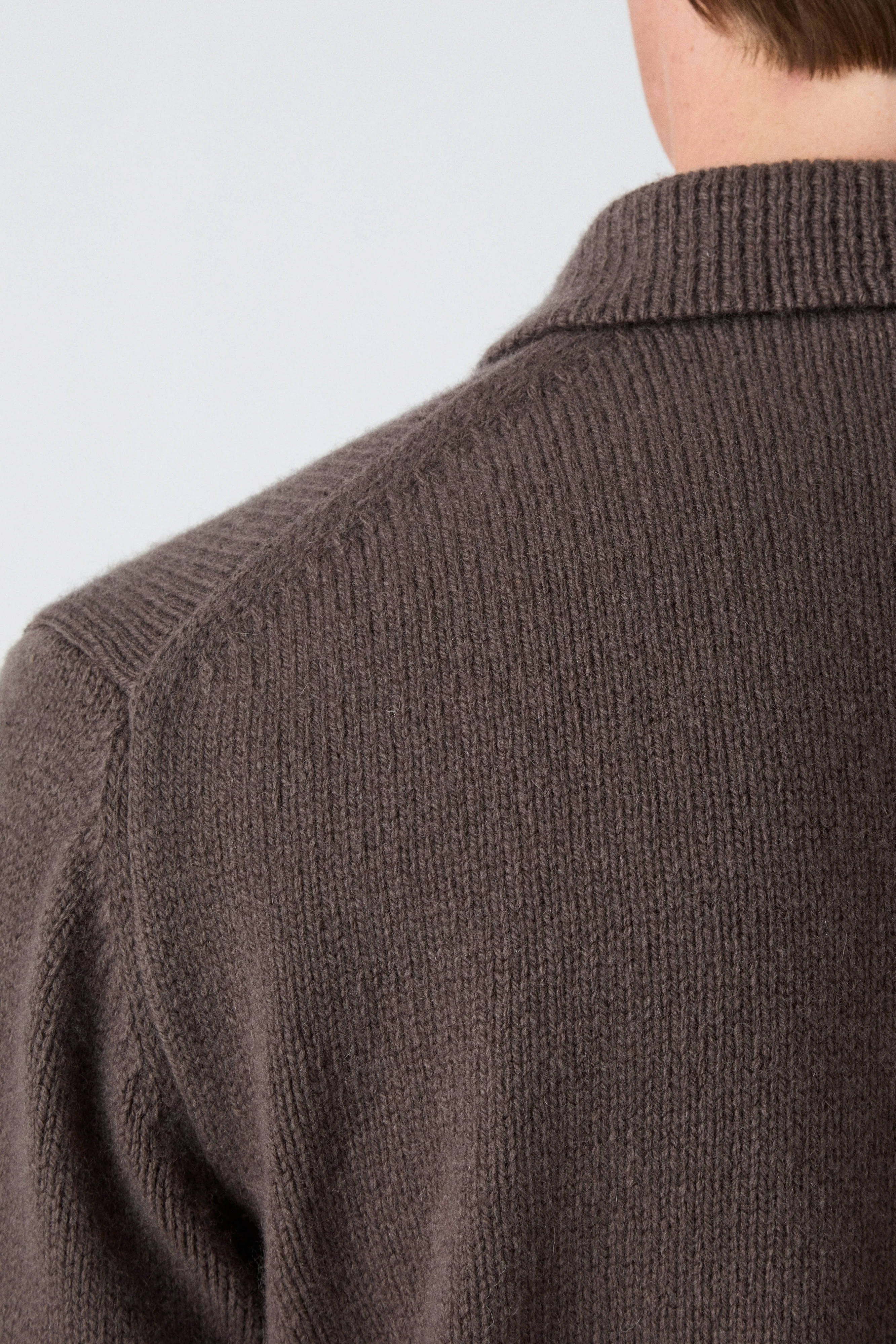Crafted from a rich merino/cashmere blend and knitted on a lower gauge machine, the Benny polo is a piece with a rich texture and a soft, luxurious feel. Features an elegantly shaped collar and a buttonless placket. Crafted in a classic silhouette, it is finished with cuffs and hem that boast a generously sized ribbing, enhancing its timeless, classic look.