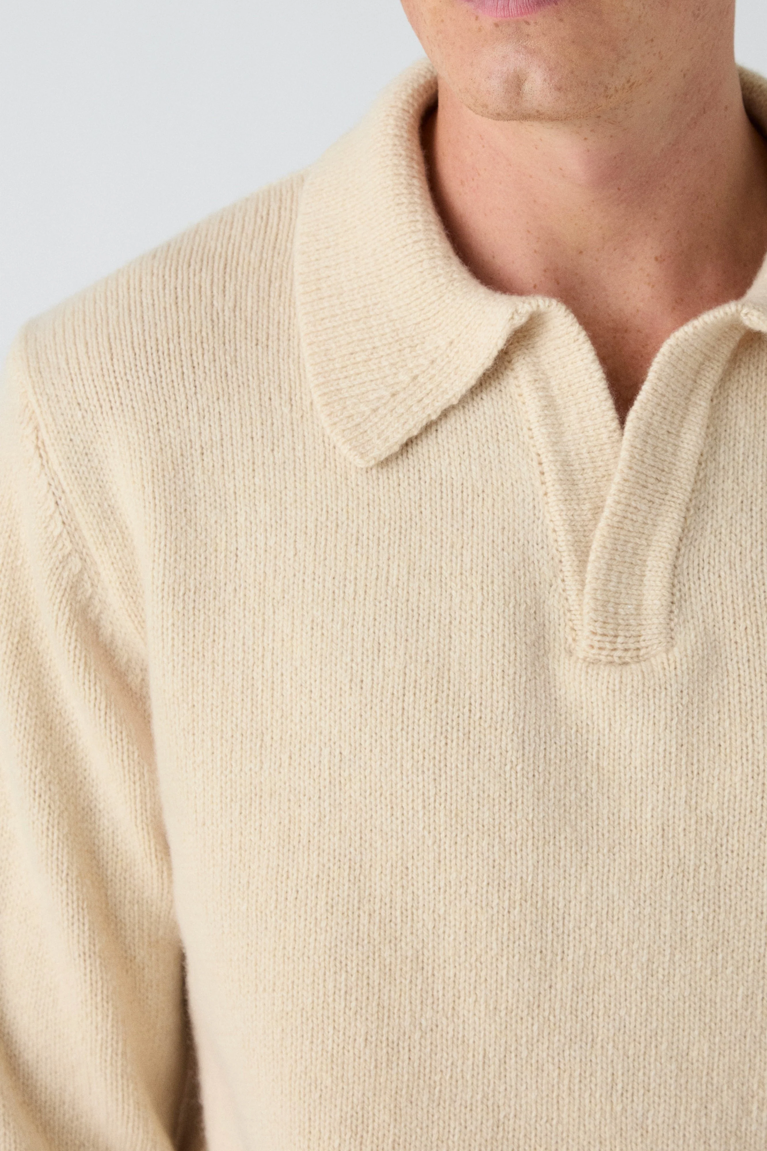 A reimagined merino/cashmere polo, featuring a refined collar and a timeless, classic silhouette.