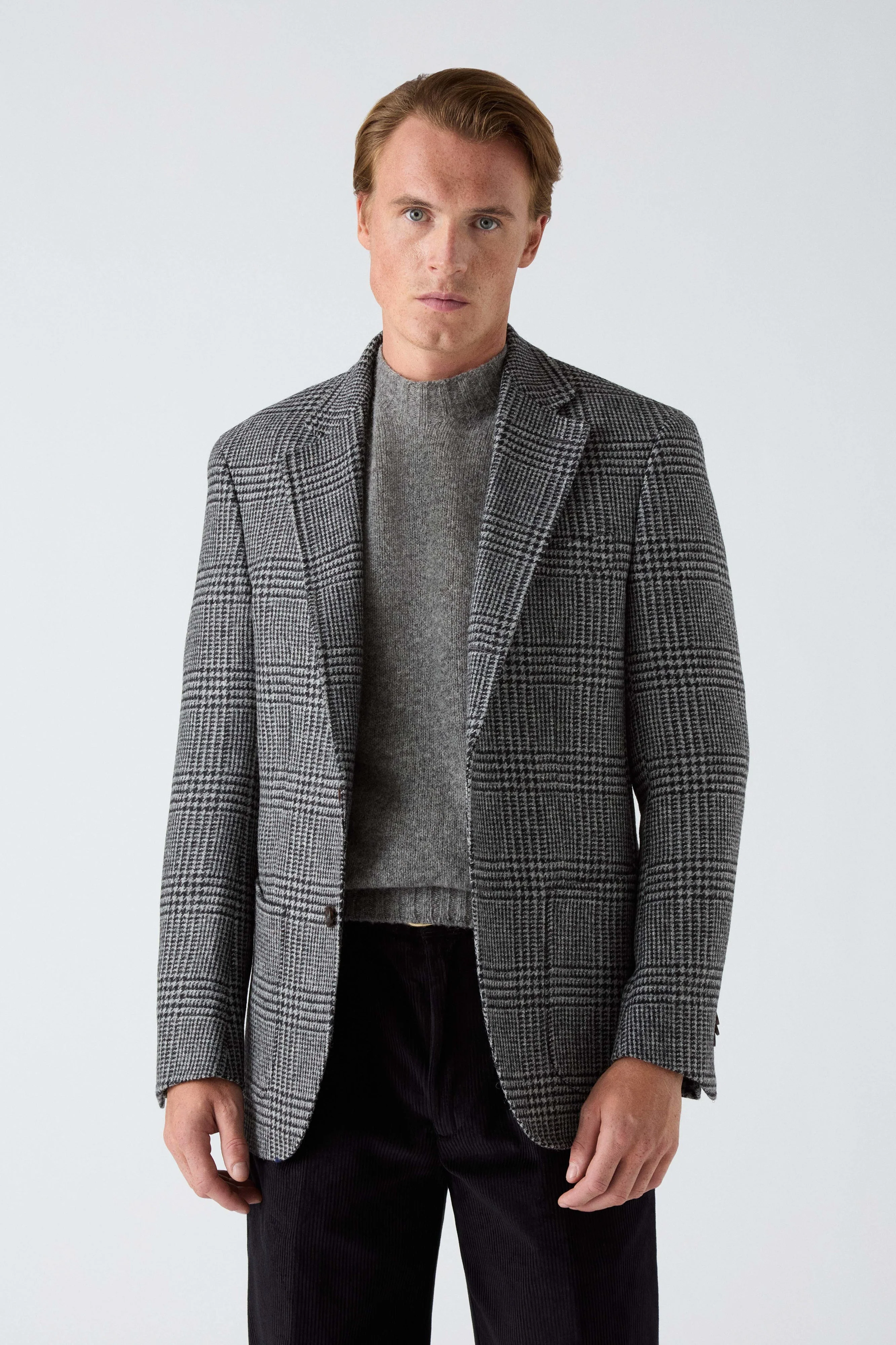 To achieve what we consider an ideal torso shape, our house style is cut fuller through the body, with a broad lapel and a nipped waist, slightly more generous than in previous seasons. A longer length and lower buttoning point add balance and subtly elongate the silhouette. Made with a half canvas construction and finished with thoughtful details such as curved patch pockets and functioning cuffs, it is crafted from an English wool cloth, woven in Yorkshire for Berg & Berg.