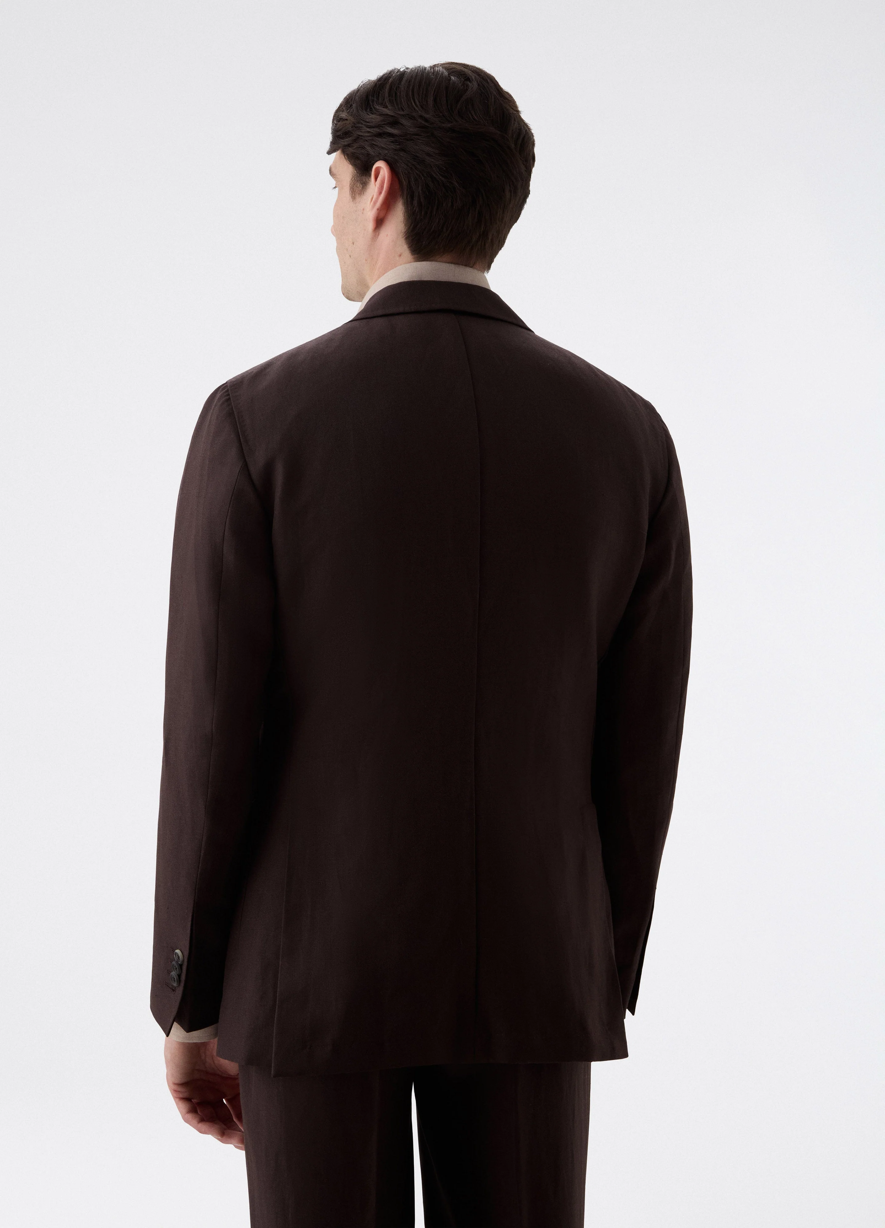 Crafted from a casual wool/linen fabric and featuring patch pockets instead of jetted ones, this jacket works well both on its own and paired with the August trousers as a suit. It has a full cut, broad lapels, and a nipped waist, creating what we believe to be the ideal torso shape. We've also opted for a slightly longer length and a lower buttoning point to subtly elongate the silhouette. Made with a half-canvas construction.